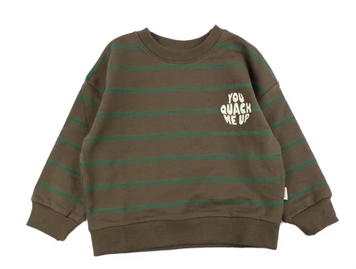 Sweatshirt i farven chocolate brown med grønne striber fra Petit Piao.