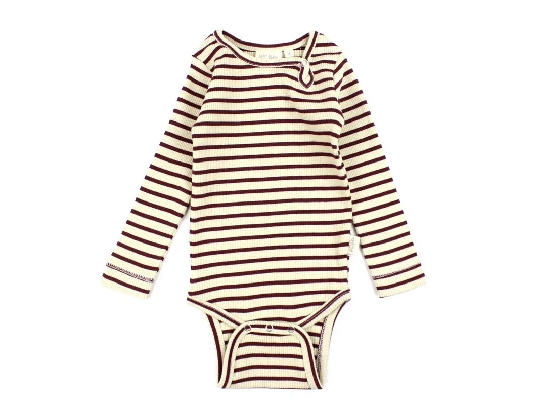 Stribet langærmet body i farverne dark cherry og dark offwhite fra Petit Piao.