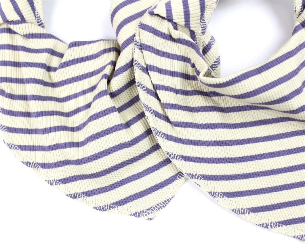 2 stribede savlesmække med justerbar trykknaplukning i farverne dusty violet og dark offwhite fra Petit Piao.