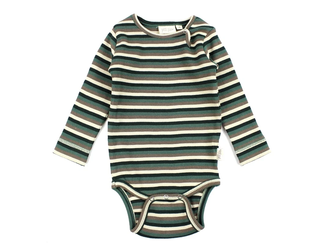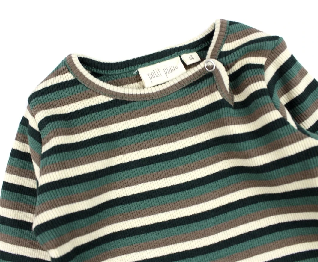 Stribet langærmet body i farven emerald green multi fra Petit Piao.