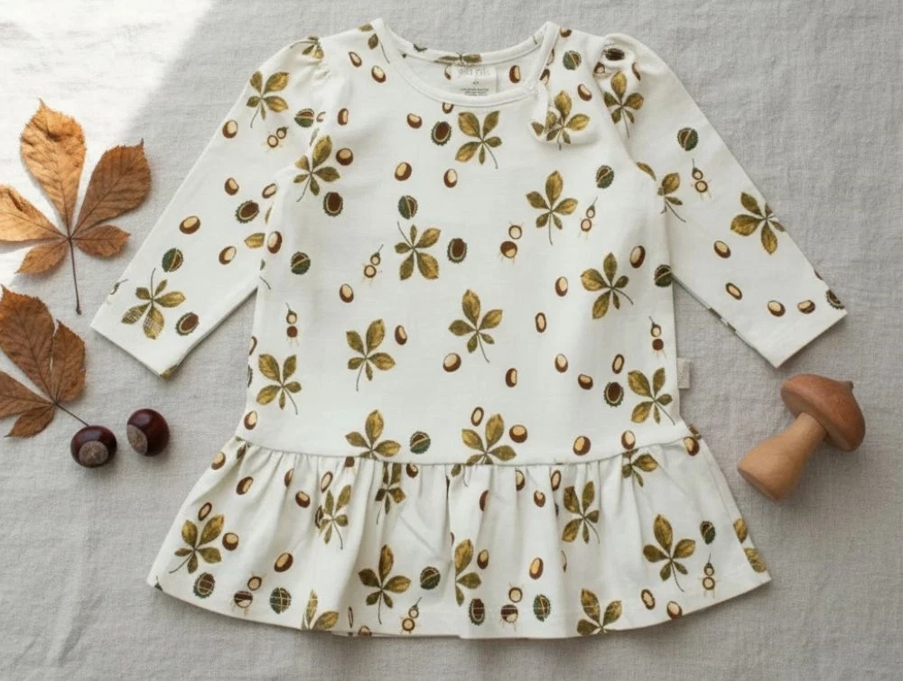 Off-white kjole med print af kastanjer fra Petit Piao.