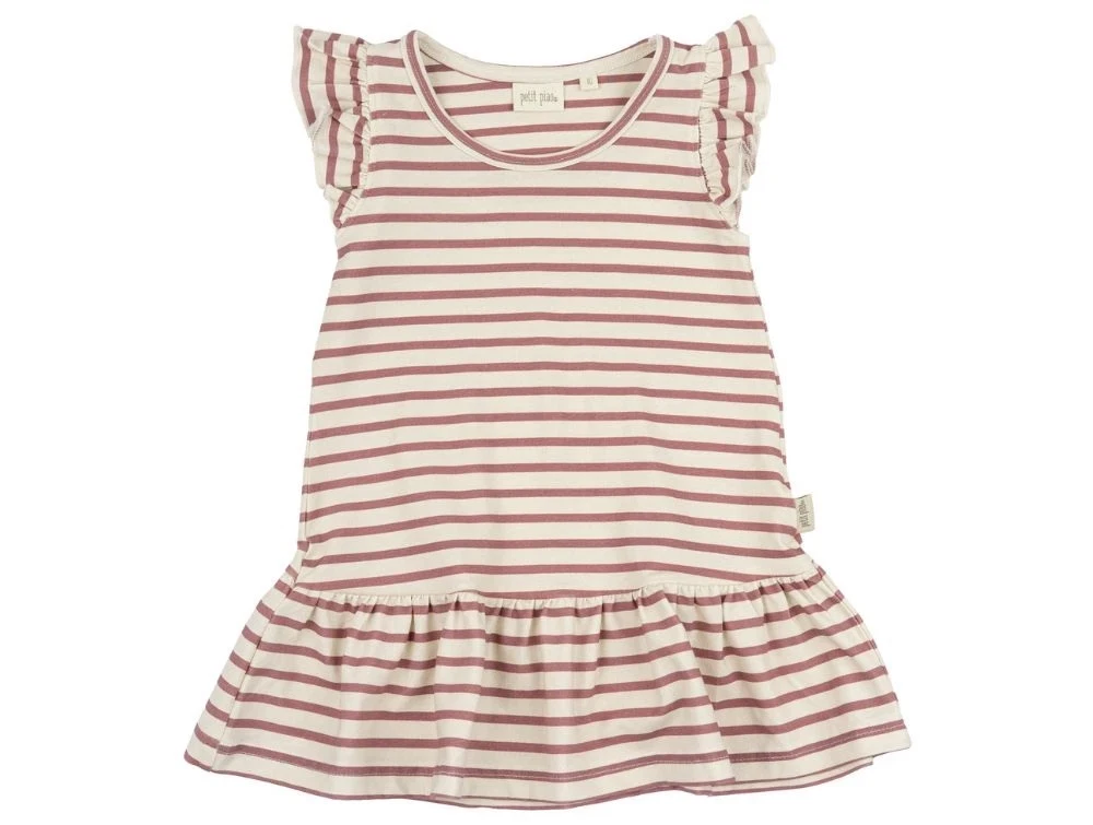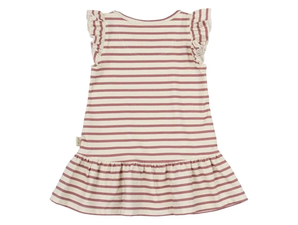 Kjole i råhvid med mørk rosa (withered rose) striber fra Petit Piao.