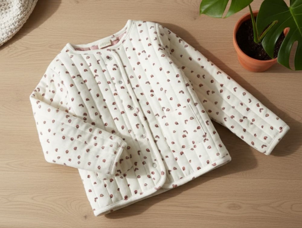 Quilted jakke med mariehøneprint fra Petit Piao.