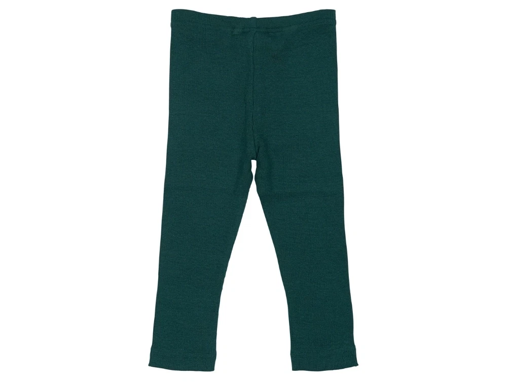 Leggings i mørkegrøn nuance (dark sea) fra Petit Piao. Klassisk ribkvalitet og tætsiddende pasform med elastik i taljen.