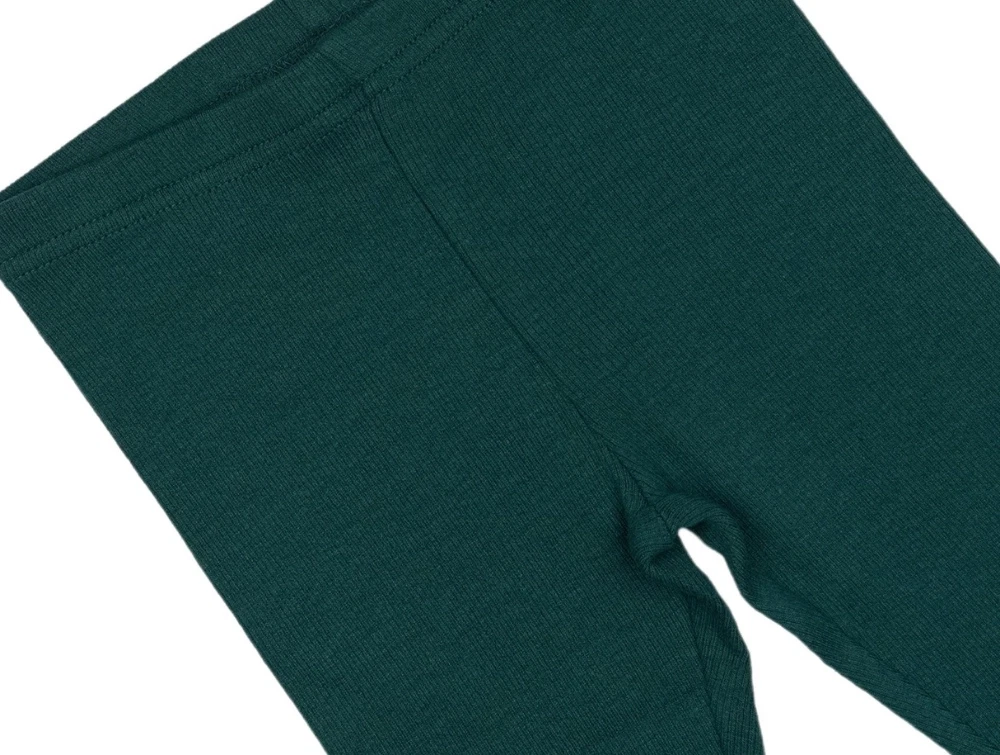 Petit Piao leggings i mørkegrøn modal-rib med elastik og tæt pasform