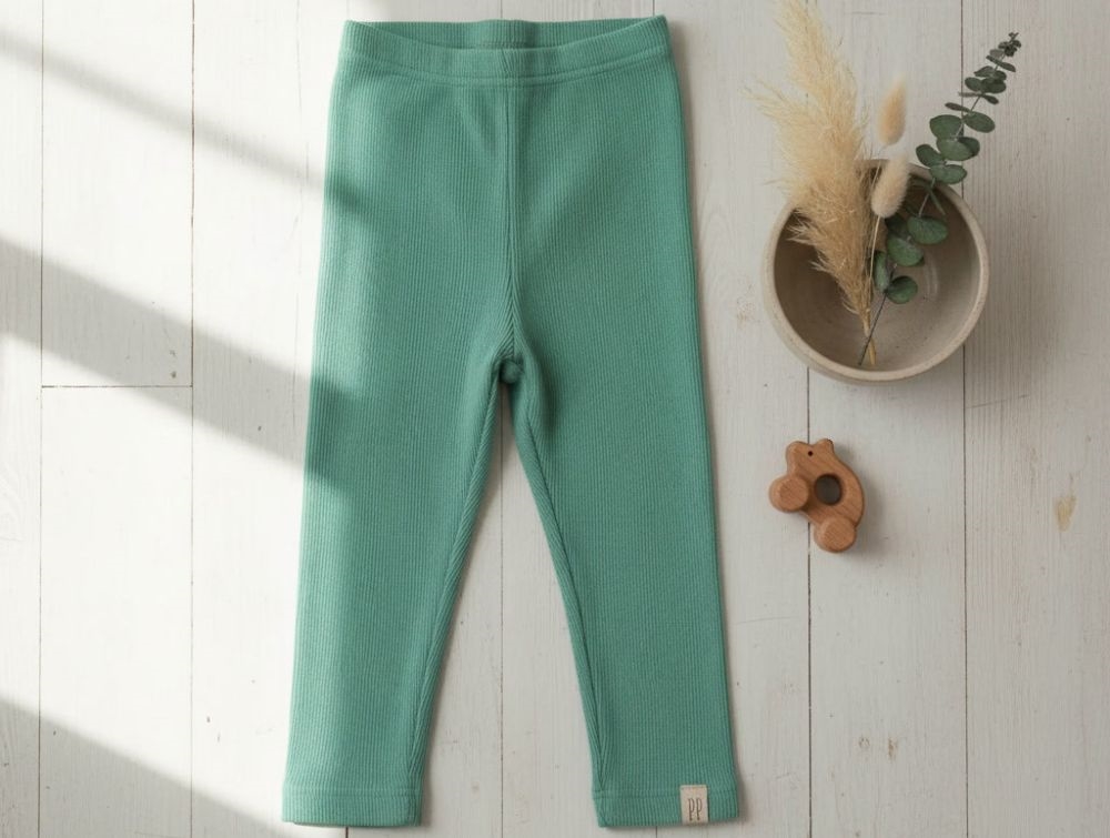 Bløde leggings fra Petit Piao i en flot grøn nuance og klassisk ribkvalitet. De har en elastisk talje, der sikrer en behagelig pasform, og materialet er både strækbart og blødt, hvilket gør dem perfekte til leg og bevægelse.