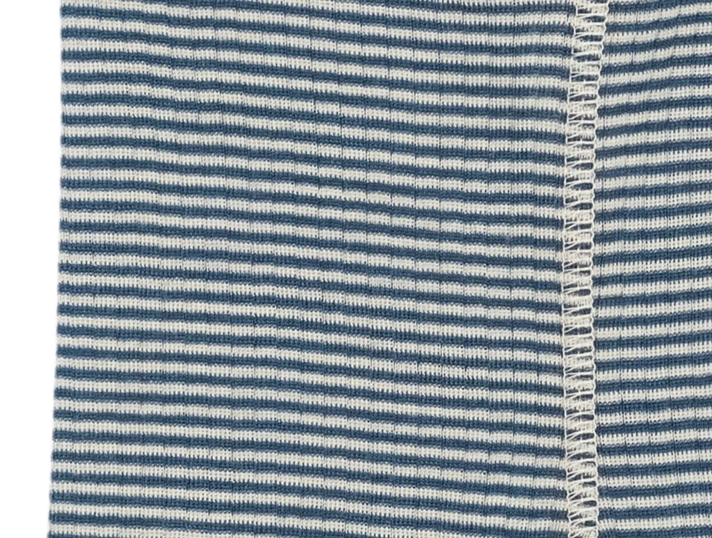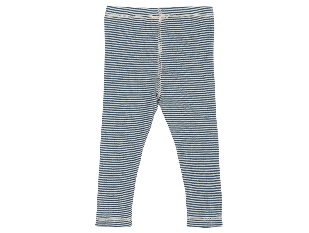 Leggings med blå striber fra Petit Piao, lavet i blød merinould med smalle striber.