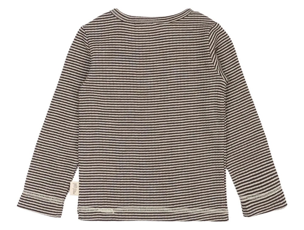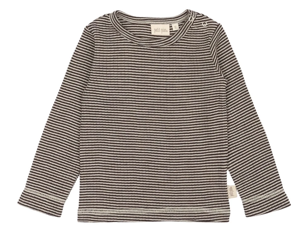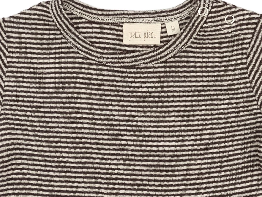 Petit Piao T-shirt i coffee bean striber med trykknap i uld
