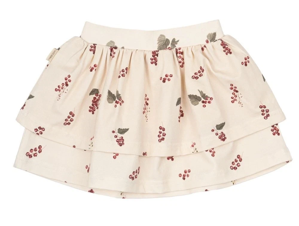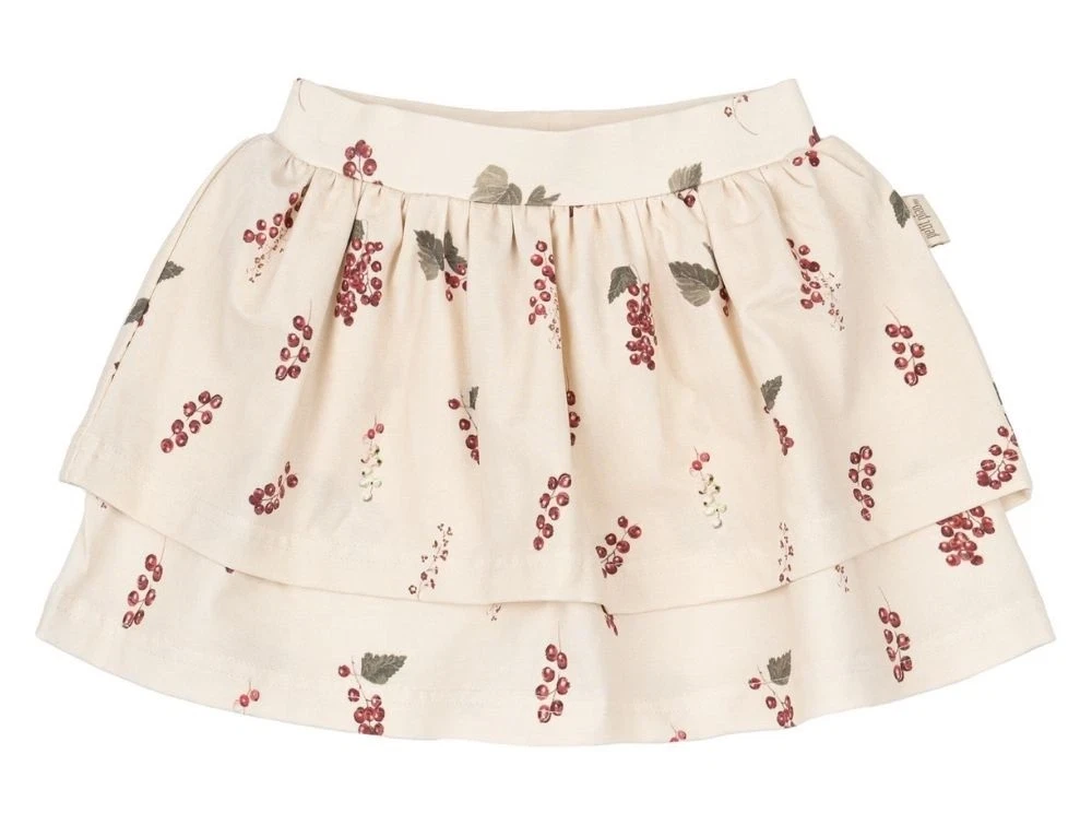 Nederdel fra Petit Piao i råhvid med et smukt akvarelprint af røde sommer ribs. Printet er inspireret af den danske natur og giver et charmerende udtryk. Nederdelen har to lag stof og rynk ved taljen, som skaber en feminin pasform.