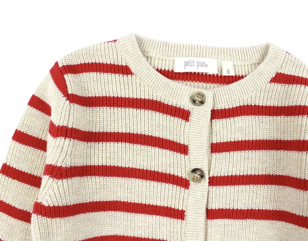 Petit Piao off white/bright red stribet strikcardiganPetit Piao off white/bright red stribet strikcardigan