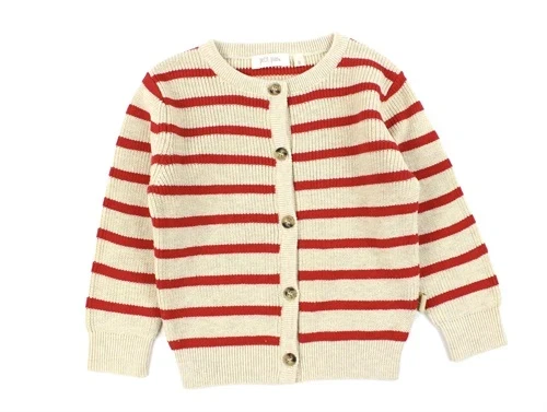 Stribet strikcardigan i farverne off white og bright red fra Petit Piao.