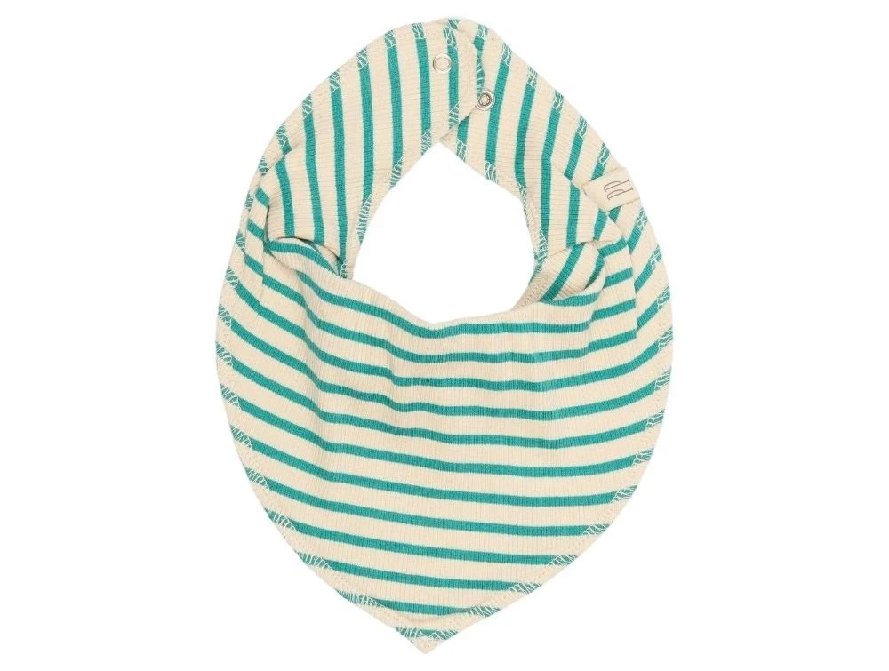 Tre fine savlesmække fra Petit Piao i bløde og behagelige materialer. Pakken indeholder én ensfarvet turkis savlesmæk i ribkvalitet, én stribet i turkis og råhvid i ribkvalitet og én råhvid med akvarelprint af guldsmed i en glat jersey. Savlesmækkene har to trykknapper i nakken, så de nemt kan justeres i størrelsen for optimal pasform.