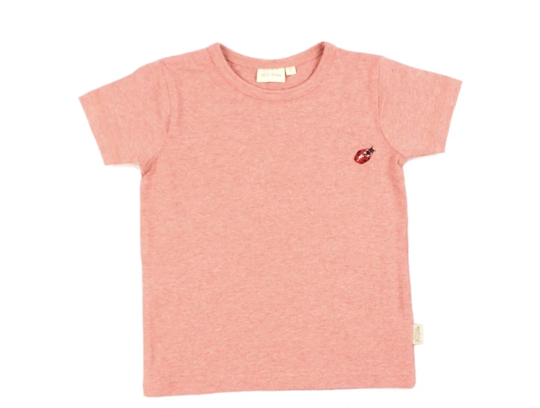 Kortærmet t-shirt i farven sea shell pink med mariehøne emblem fra Petit Piao.