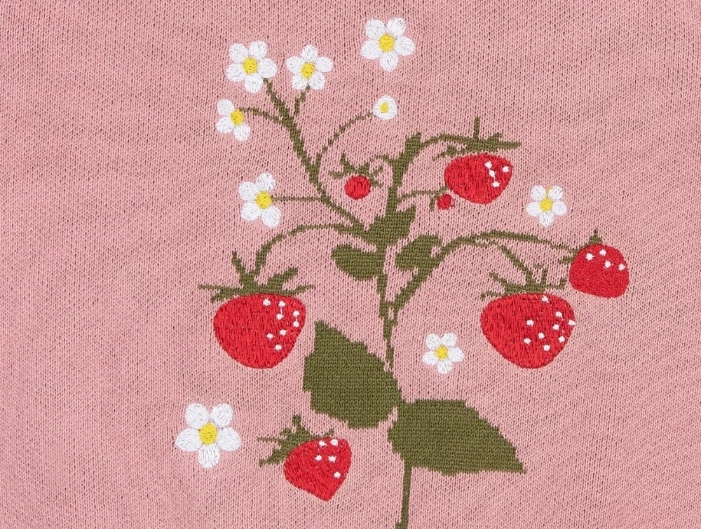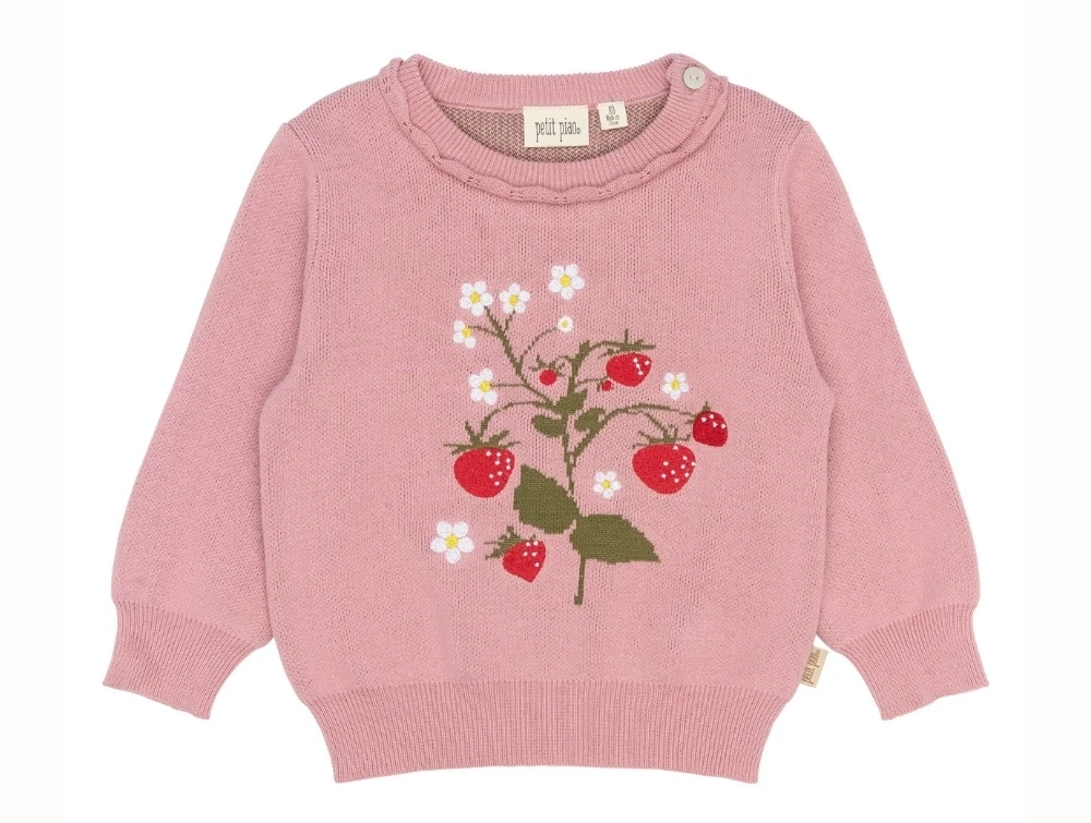 Petit Piao striktrøje i dusty rose med jordbærmotiv
