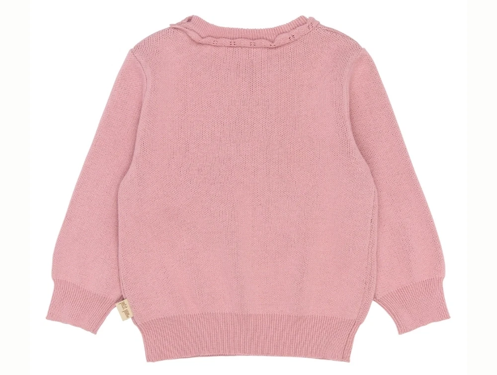 Petit Piao Ellen striktrøje dusty rose forsidePige iklædt Petit Piao Ellen striktrøje dusty rosePetit Piao Ellen striktrøje dusty rose jordbær detaljePetit Piao Ellen striktrøje dusty rose bagside