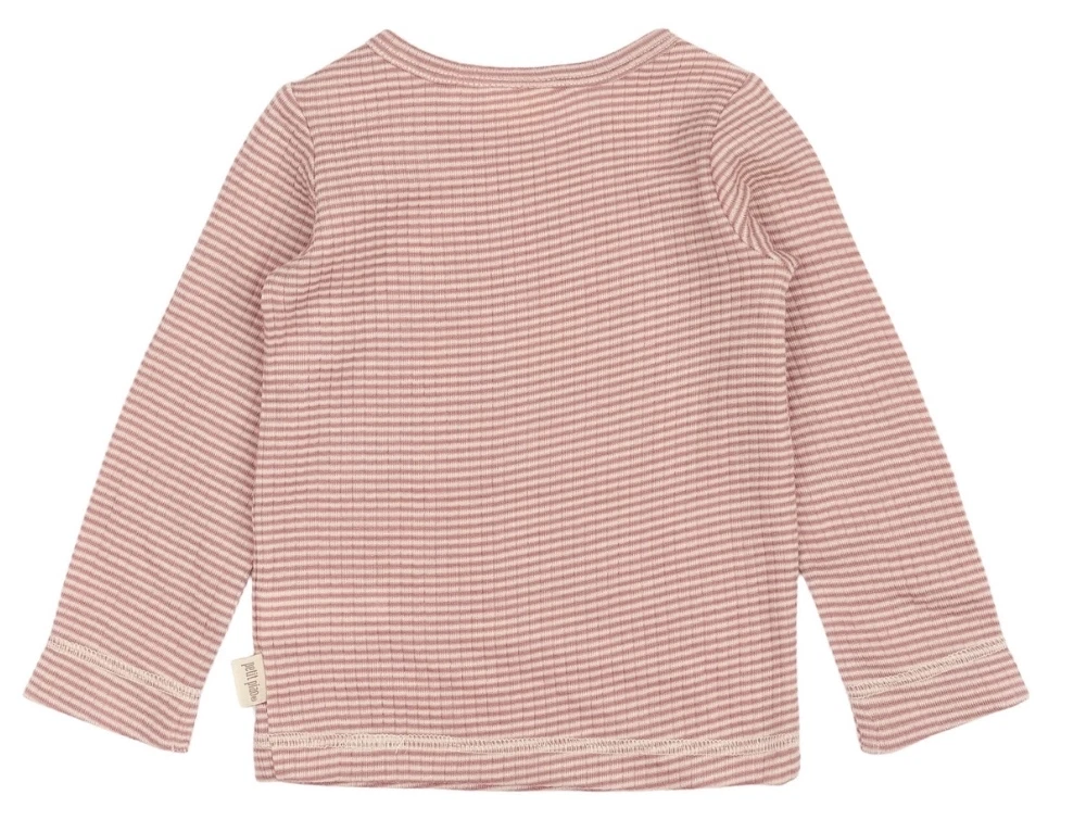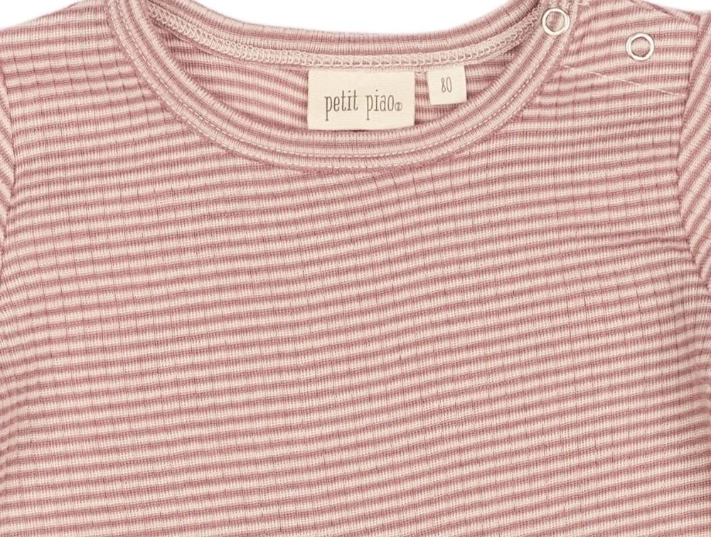 Langærmet t-shirt i nostalgic rose striber fra Petit Piao set forfra Langærmet t-shirt i nostalgic rose striber fra Petit Piao set bagfraLangærmet t-shirt i nostalgic rose striber fra Petit Piao nærbillede