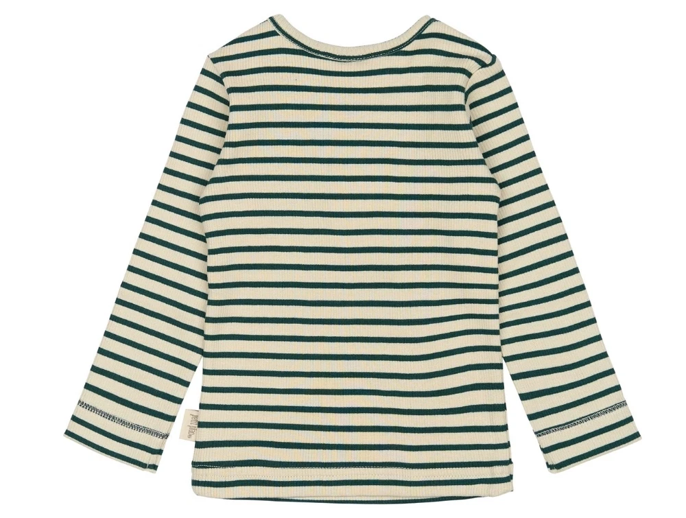 Langærmet T-shirt i dark sea striber fra Petit Piao.