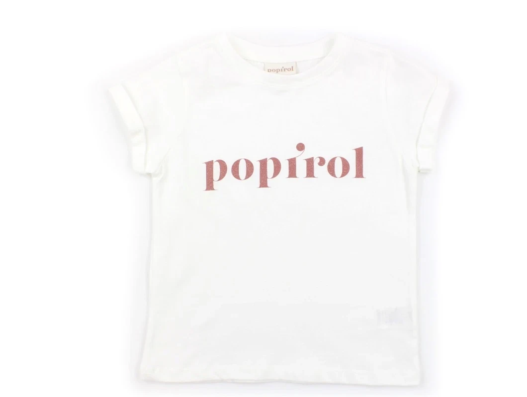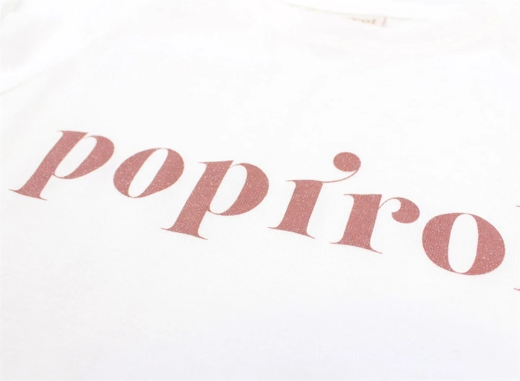 Kortærmet råhvid t-shirt med glimmer-Popirol logo fra Popirol.