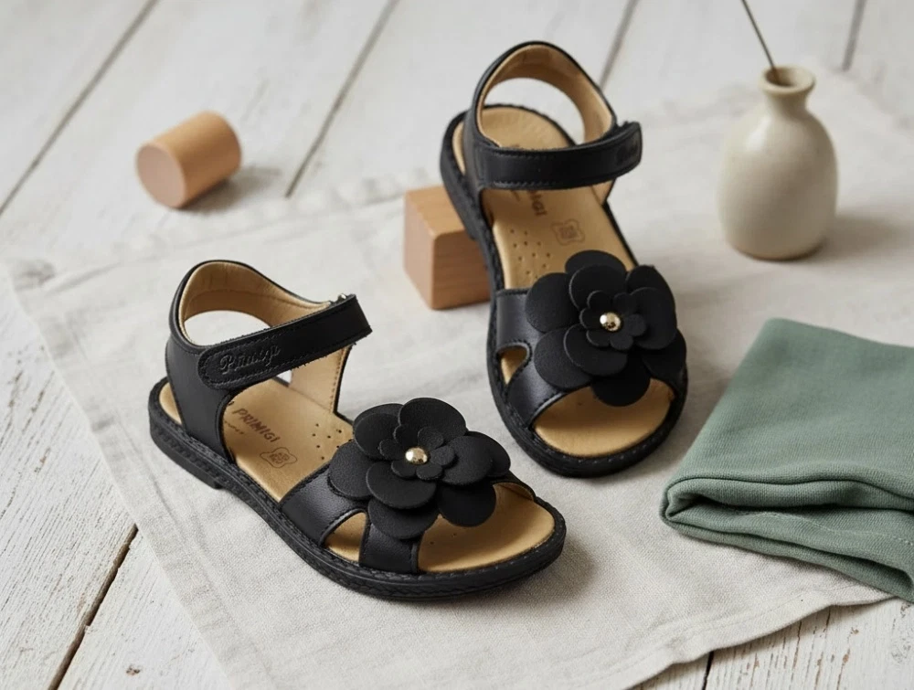 Sort let sandal med blomst fra Primigi.