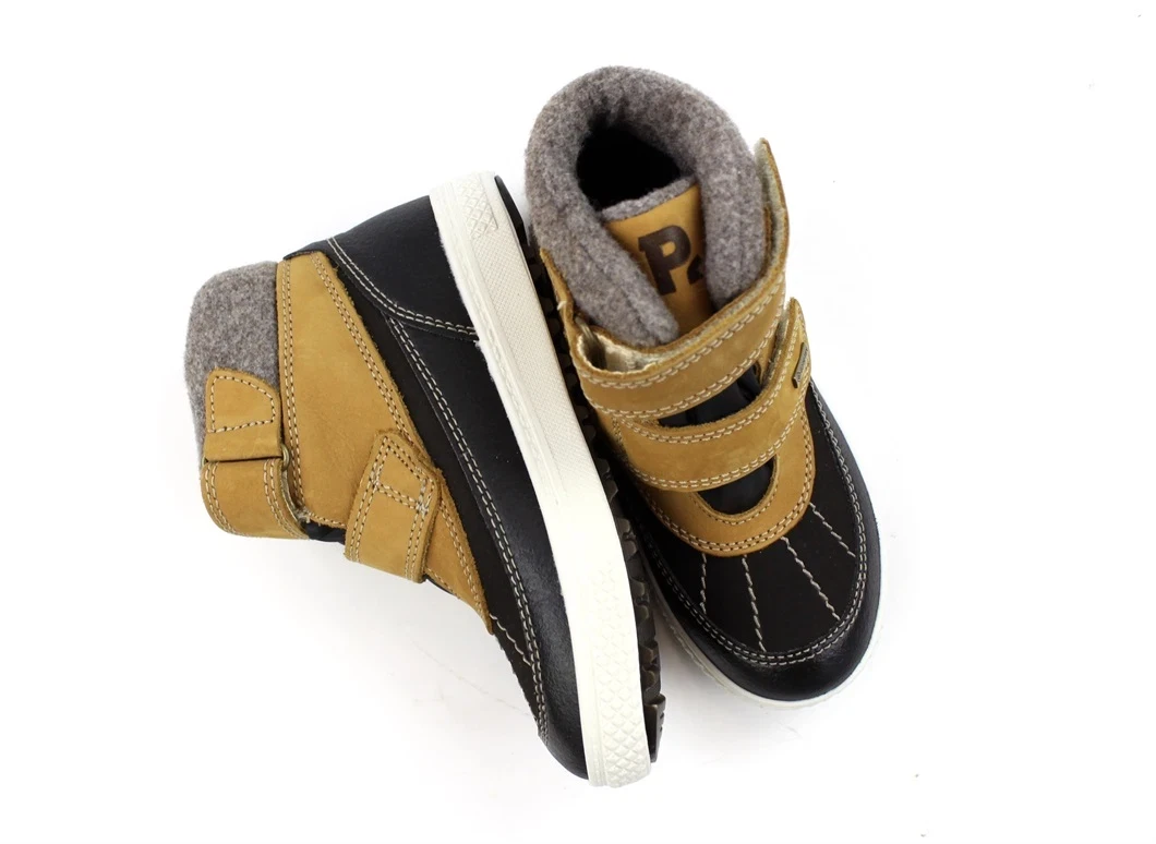 Sennepsgule/sorte vinterstøvler fra Primigi med velcro. Støvlen er meget let og er rigtig velegnet til aktive børn.