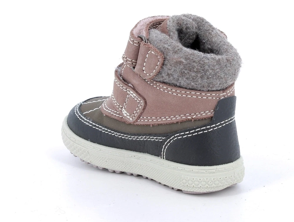 Vinterstøvle i rosa nuance og sort fra Primigi. Inspireret af outdoor-looket, men tilpasset de mindste. Modellen har to velcroremme, der gør den nem at tage af og på, og en gummiforstærket underdel, der beskytter mod vand og mudder. Støvlen er let i vægten og har en ergonomisk form, som støtter foden uden at begrænse bevægelsen.
