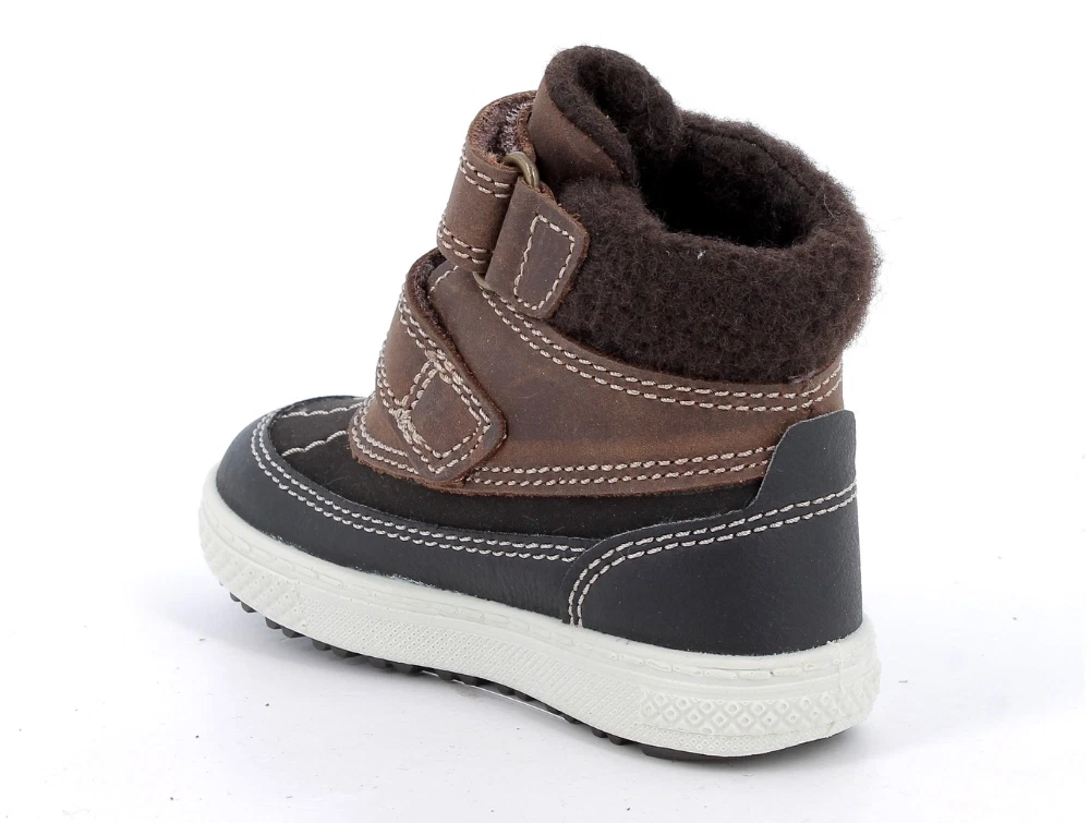 Vinterstøvle i brun nuance og sort fra Primigi. Inspireret af outdoor-looket, men tilpasset de mindste. Modellen har to velcroremme, der gør den nem at tage af og på, og en gummiforstærket underdel, der beskytter mod vand og mudder. Støvlen er let i vægten og har en ergonomisk form, som støtter foden uden at begrænse bevægelsen.