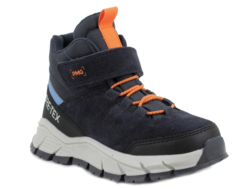Vinterstøvle i navy ruskind og tekstil fra Primigi. Modellen har en let og sporty lav konstruktion, der giver god komfort til aktive børn. Den er foret med varmt GORE-TEX uldfor, som hjælper med at sikre tørre fødder. Elastiksnørebånd kombineret med velcrorem gør støvlen nem at få af og på.