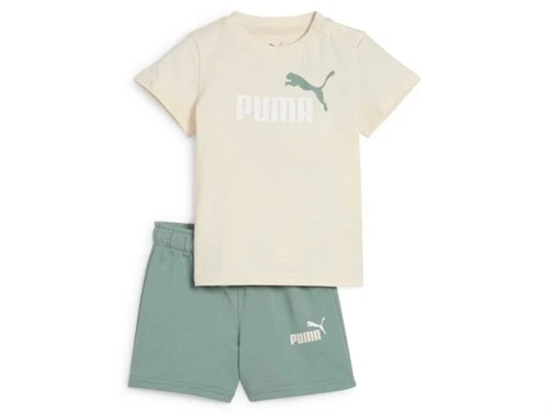 T-shirt og shorts sæt i beige og grøn (alpine snow) med logoprint fra Puma.