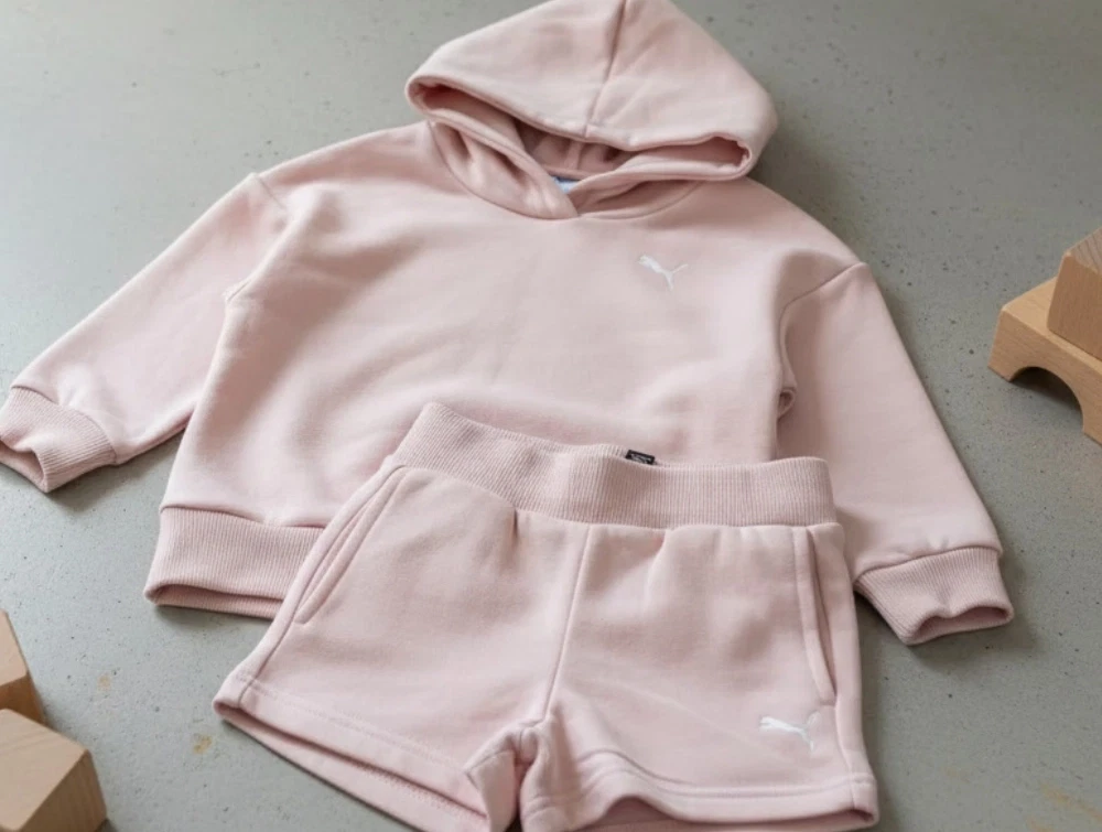 Mere information om Puma rose dust sweatset med hoodie og shorts