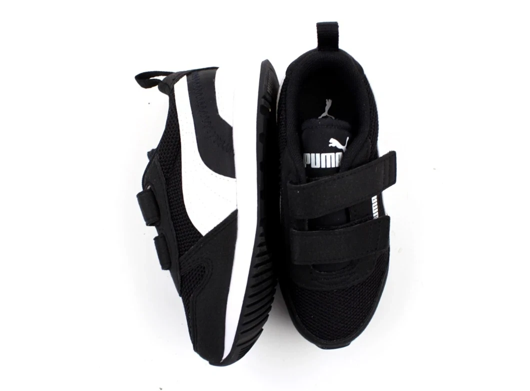 Lette sneakers fra Puma i sort og hvid. Lukkes med velcrolukning.