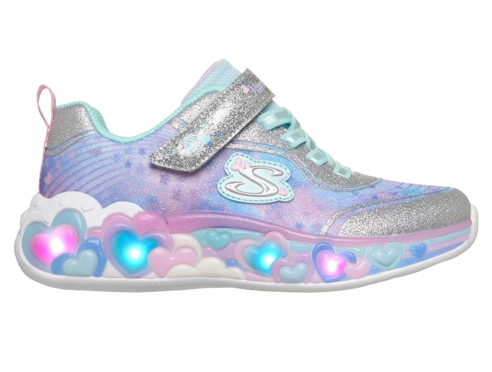 Skechers Eternal Heart Lights sneaker sølv med hjerter og blinklys