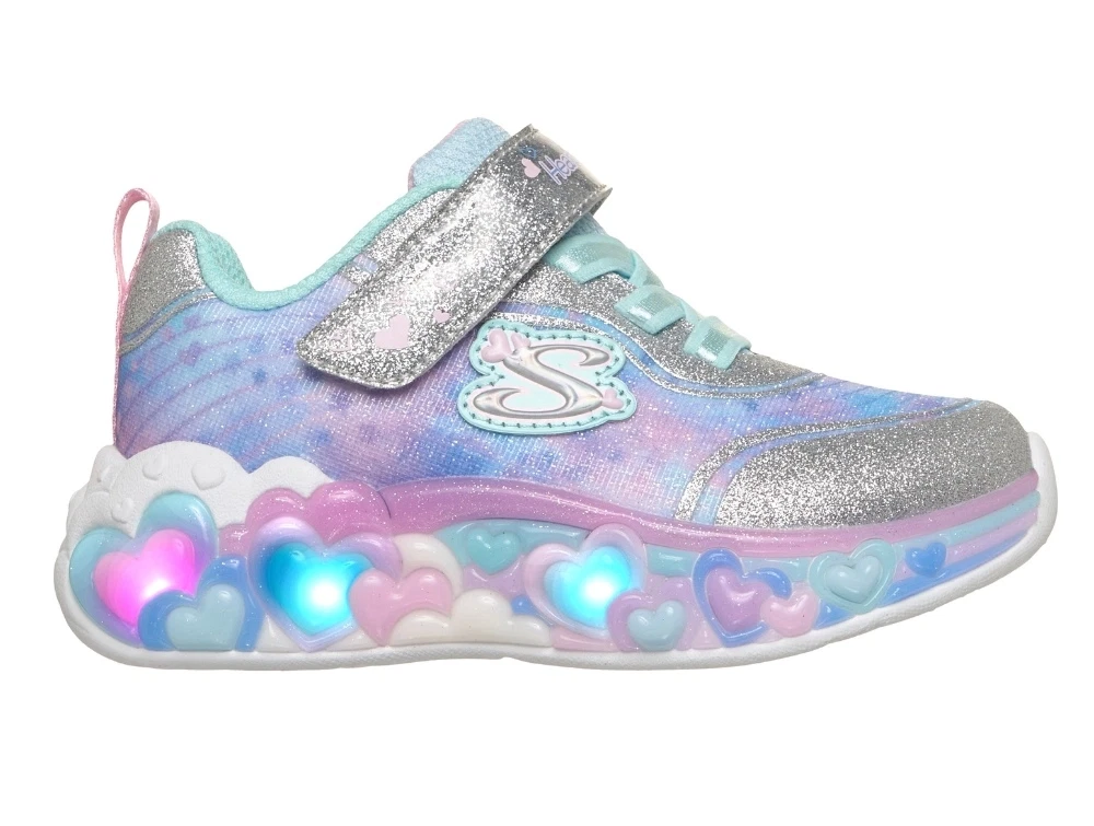 Skechers Eternal Heart Lights sneaker sølv med hjerter og blinklys