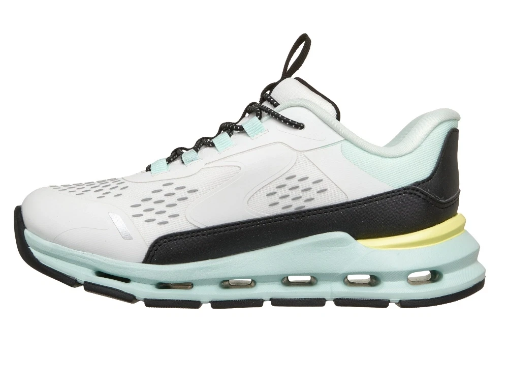 Slip-in sneaker i hvid og mintfarvet nuance fra Skechers. Modellen Glide-Step – Vista Lane er designet med et sporty udtryk og en let overdel i mesh kombineret med syntetiske detaljer.