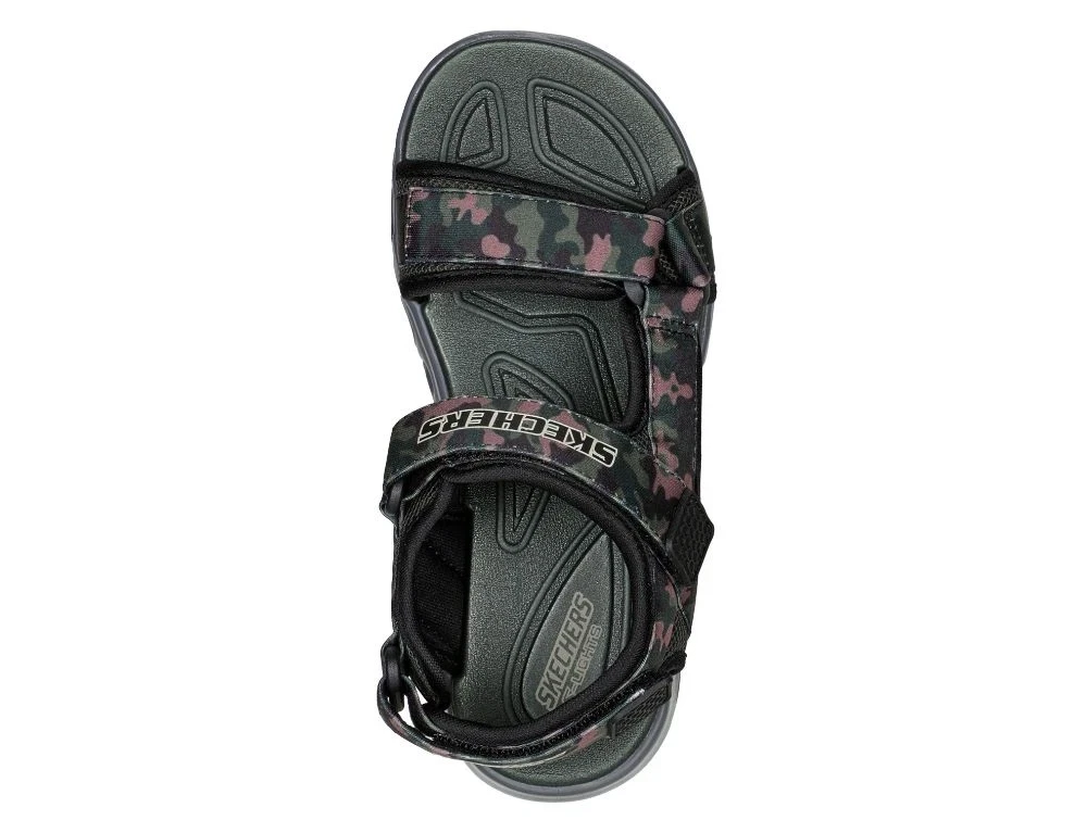 Sporty sandal fra Skechers i sort og oliven med camouflageprint.