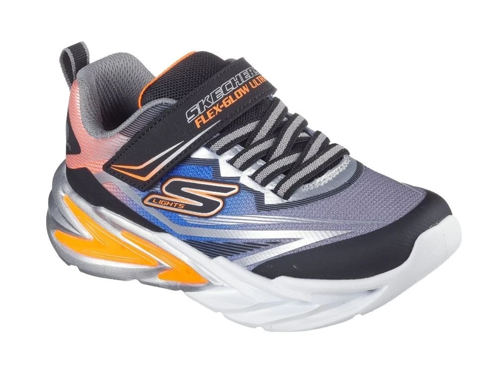 Skechers lysende sko sort/sølv med blinklys og velcro