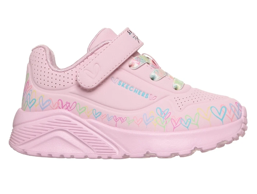 Skechers Uno Lite Heart Craze sneaker i rosa med hjerteprint