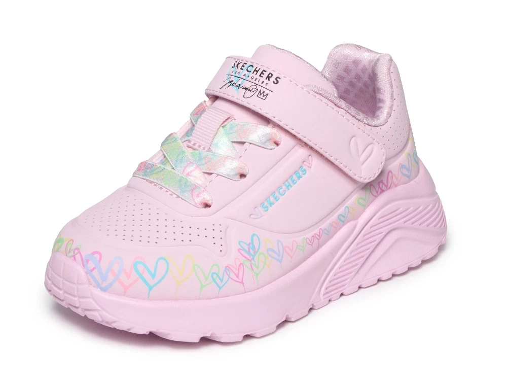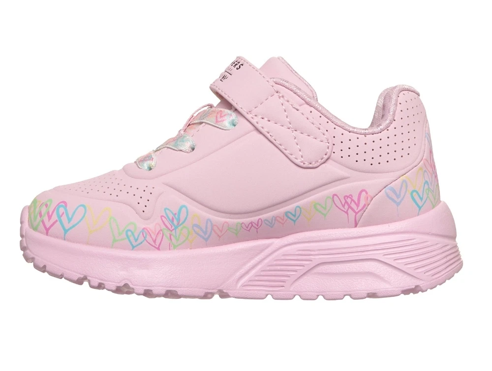 Skechers Uno Lite Heart Craze sneaker lyserød med hjerteprint og velcro