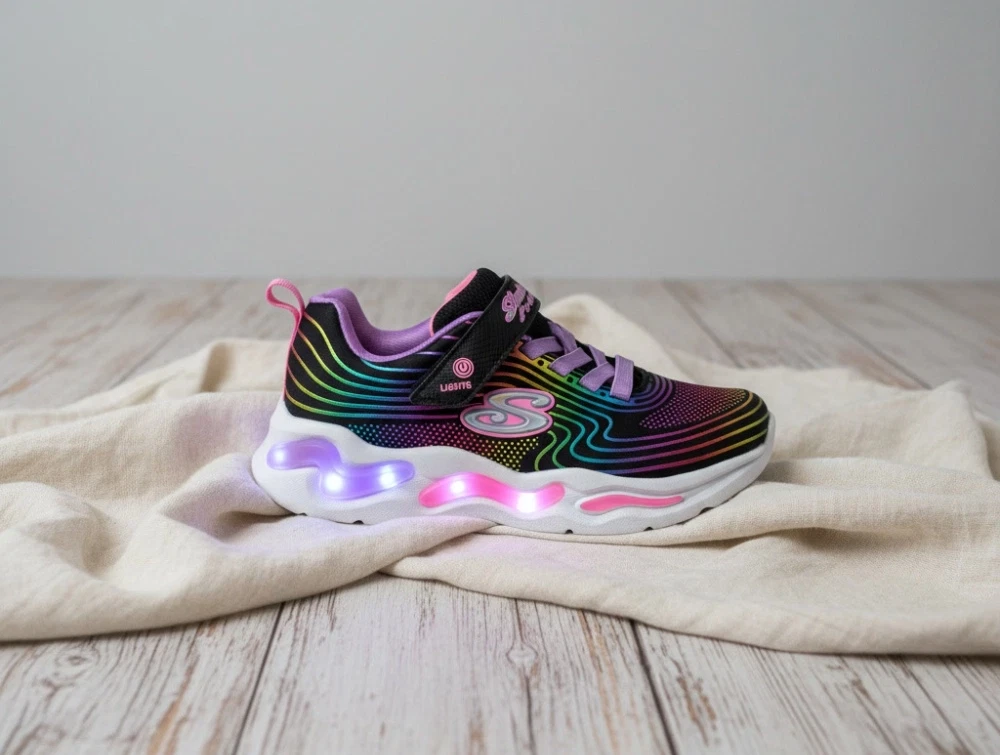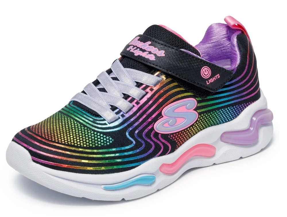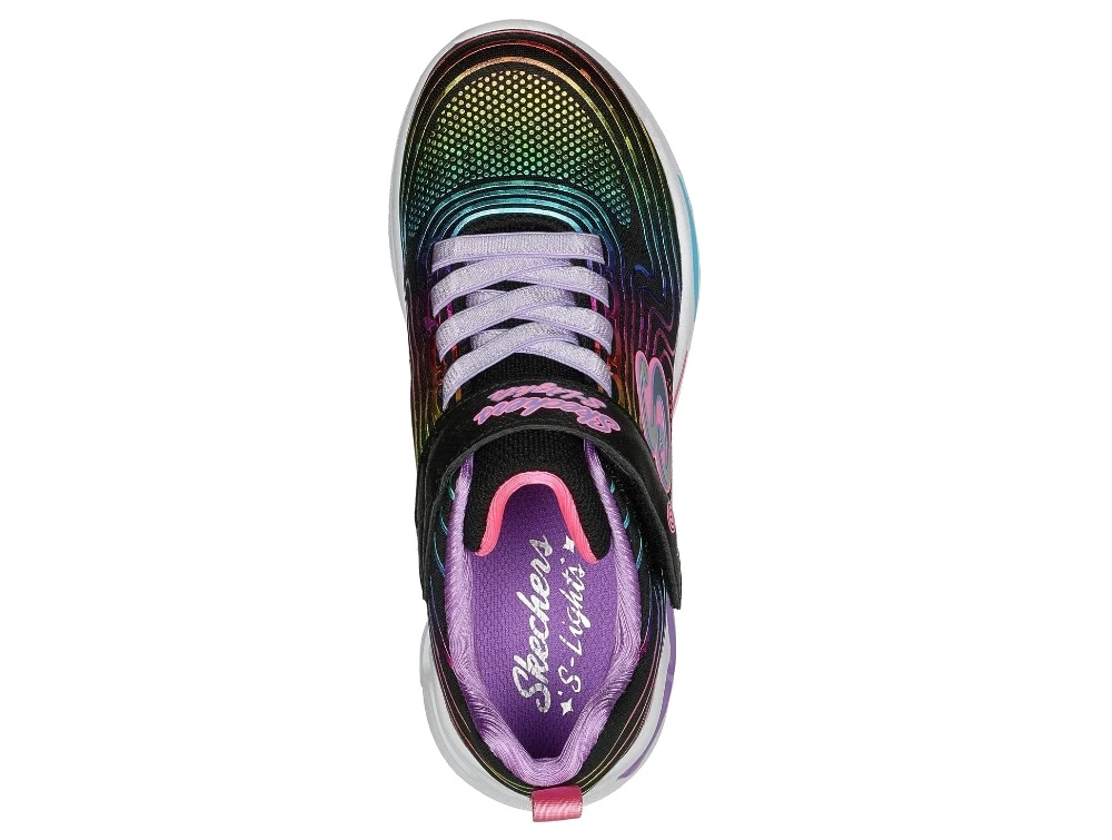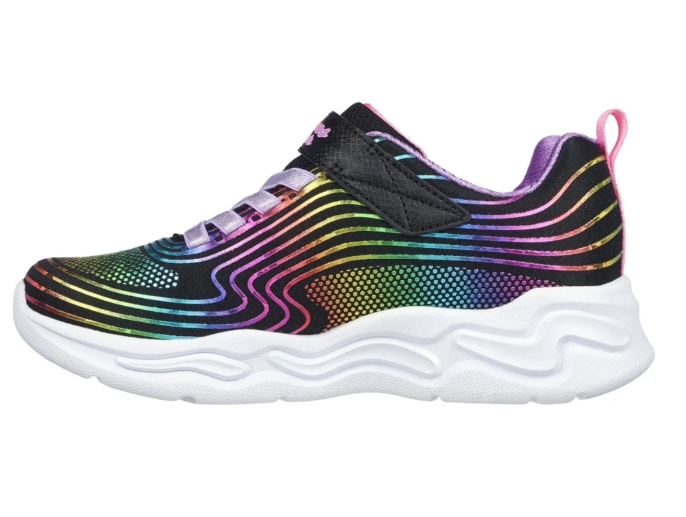 Skechers Wavy Beams sneaker sort med regnbueprint og blinklys