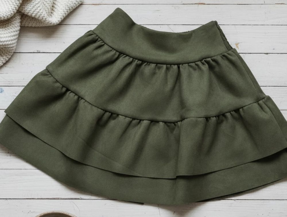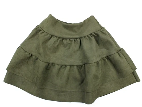 Nederdel i imiteret skind i farven army green fra Sofie Schnoor Girls. Nederdelen har elastik i linningen.