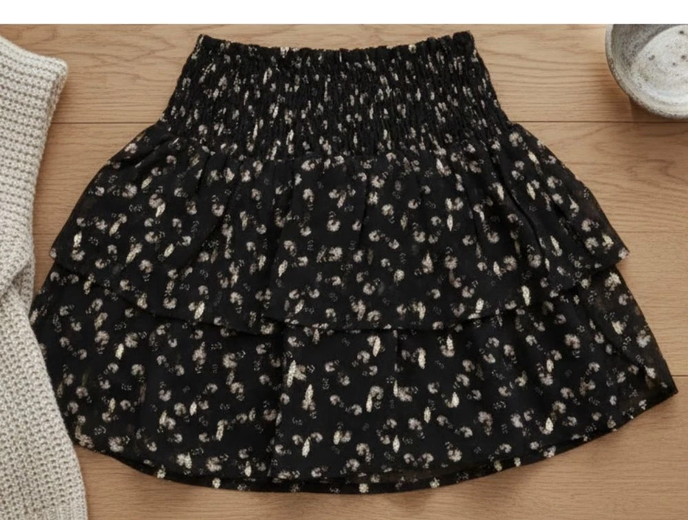 Sort nederdel med blomsterprint og guldglitter fra Sofie Schnoor Girls.