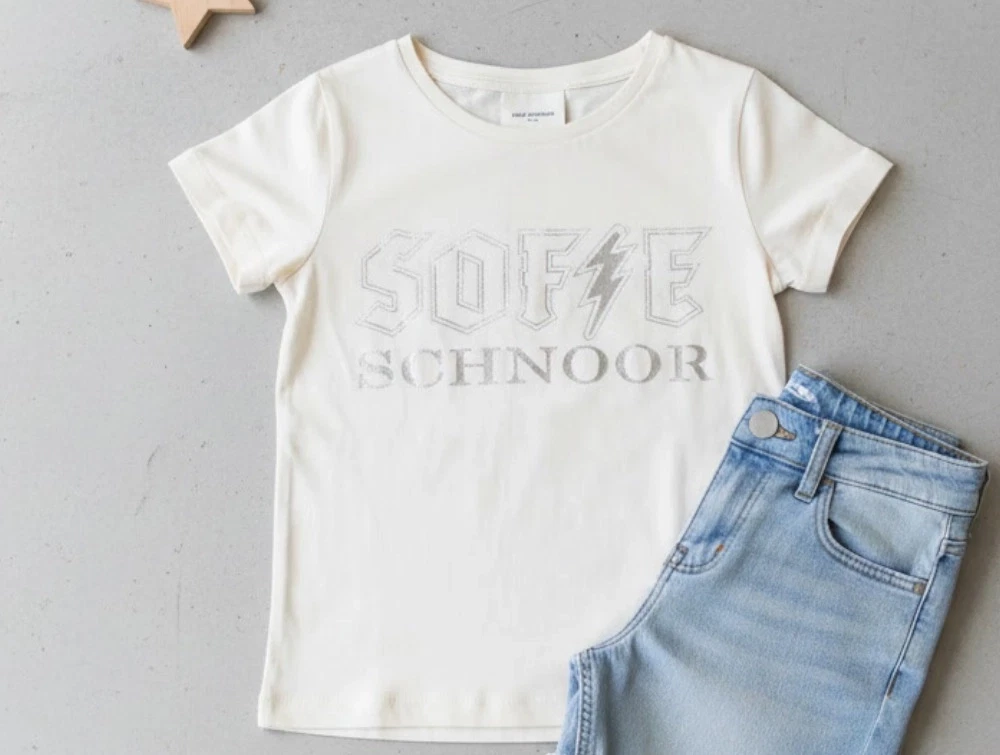 Offwhite t-shirt med sølvfarvet print fra Sofie Schnoor Girls.