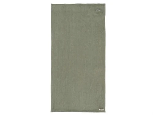 Håndklæde i farven oil green med lille broderet fisk fra Soft Gallery.