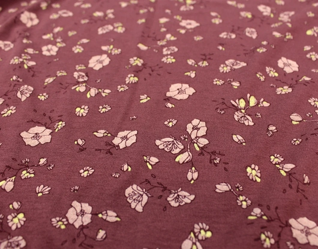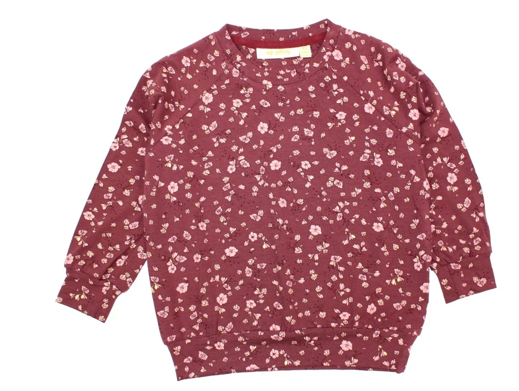 Bluse i farven oxblood med blomsterprint fra Soft Gallery.