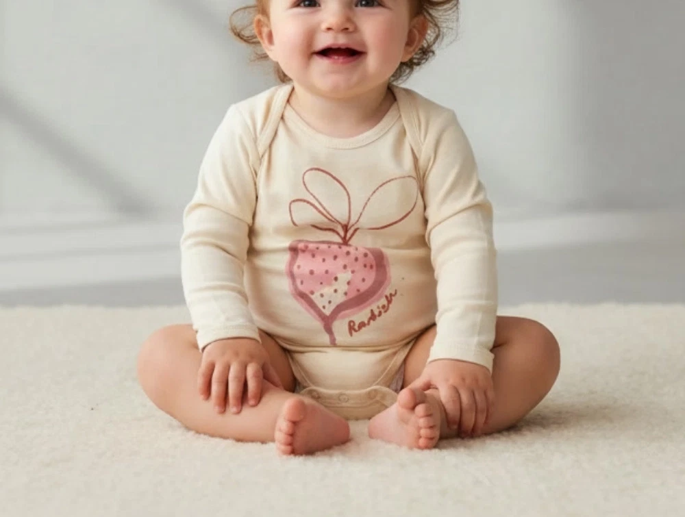 Body i farven winter wheat med radise-print på fronten fra Soft Gallery.