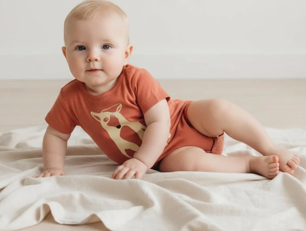 Kortærmet body i farven baked clay med dyreprint fra Soft Gallery.