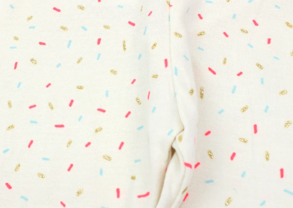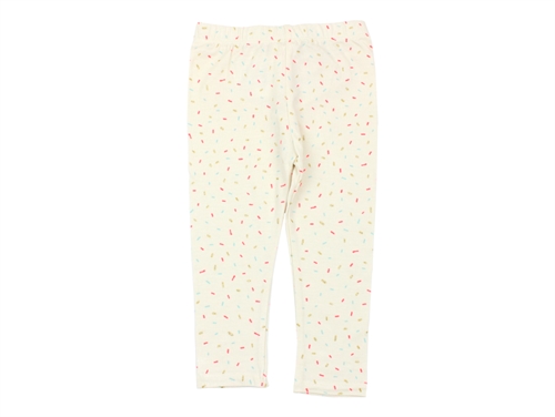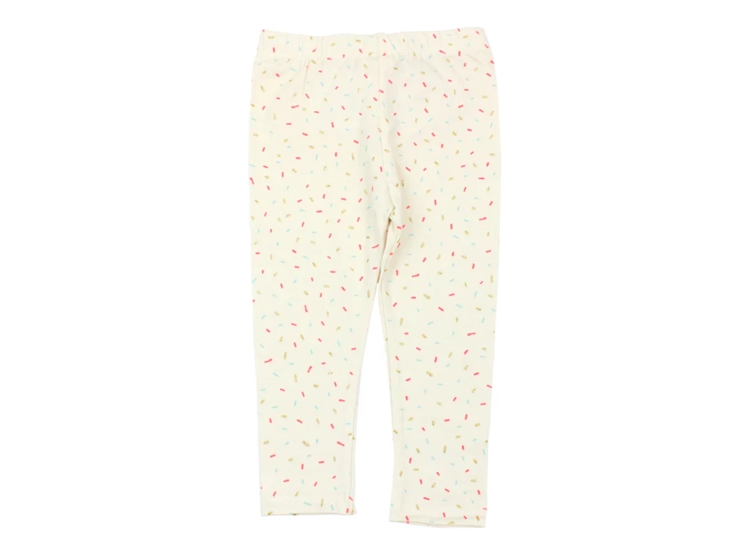 Råhvide leggings med turkis, pink og guldfarvet 'drizzle'-print fra Soft Gallery.