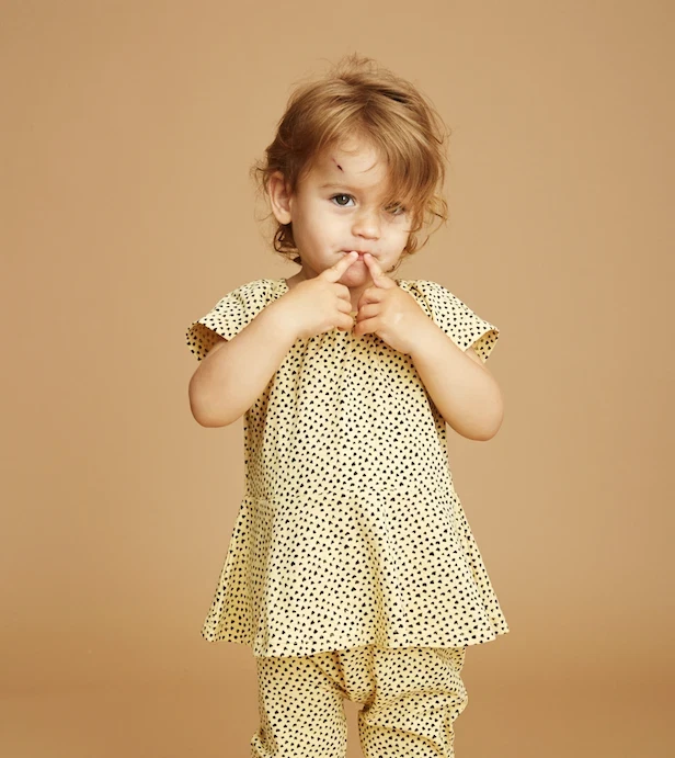 Kjole i farven sundress med hjerte-print fra Soft Gallery.