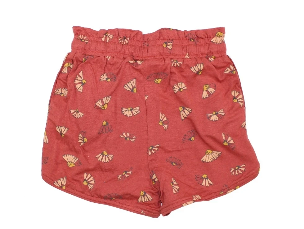 Shorts i farven burnt brick med kamilleblomst-print fra Soft Gallery. To lommer og elastikbånd i linning.