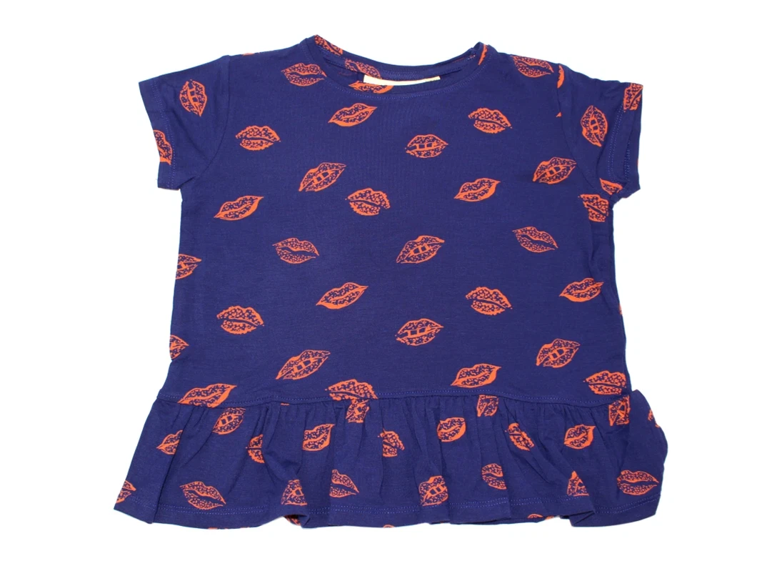 Mørkeblå t-shirt med 'kiss'-print fra Soft Gallery.