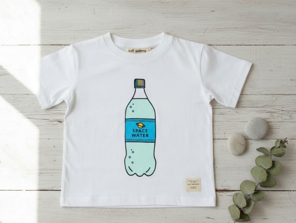 Hvid t-shirt med 'spacewater'-print på fronten fra Soft Gallery.